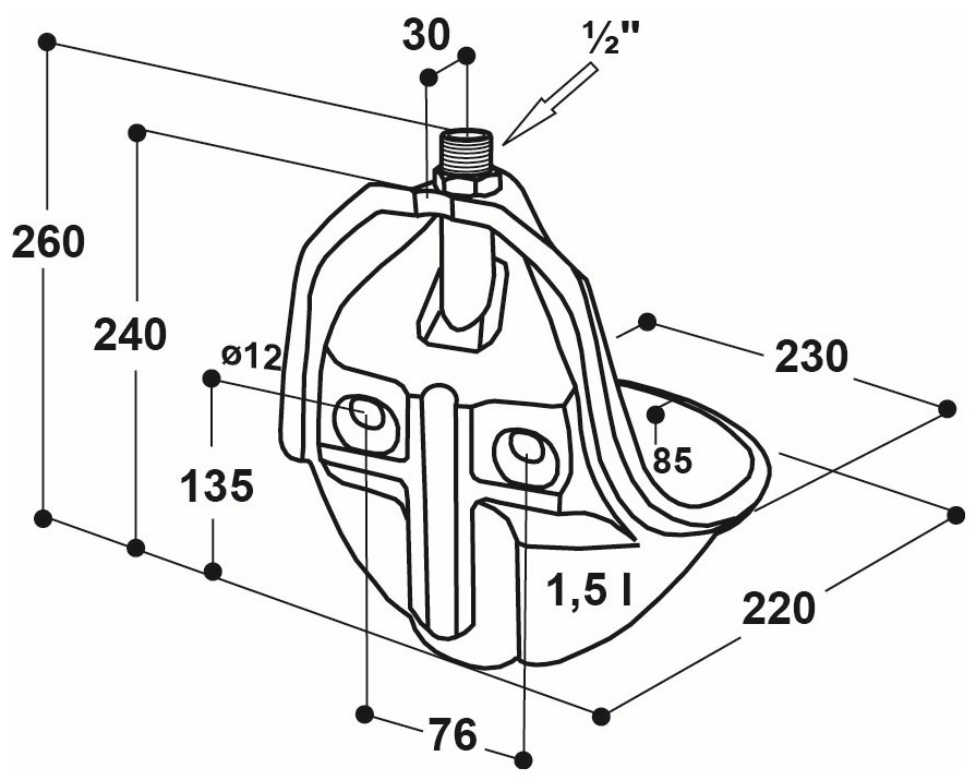 Geëmailleerde gegoten schaal Regeling hoeveelheid water Aansluiting ½" van boven Toevoer tot 3,5 l / min bij 5 bar
